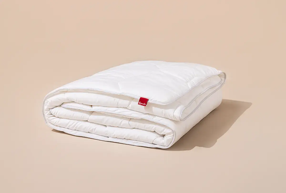On peut également citer le choix du garnissage. Chez Epéda, nous avons opté pour des fibres siliconées afin de proposer une couverture légère. Ces fibres sont enveloppées d’un textile à base de coton traité à l’aloe vera pour encore plus de douceur.